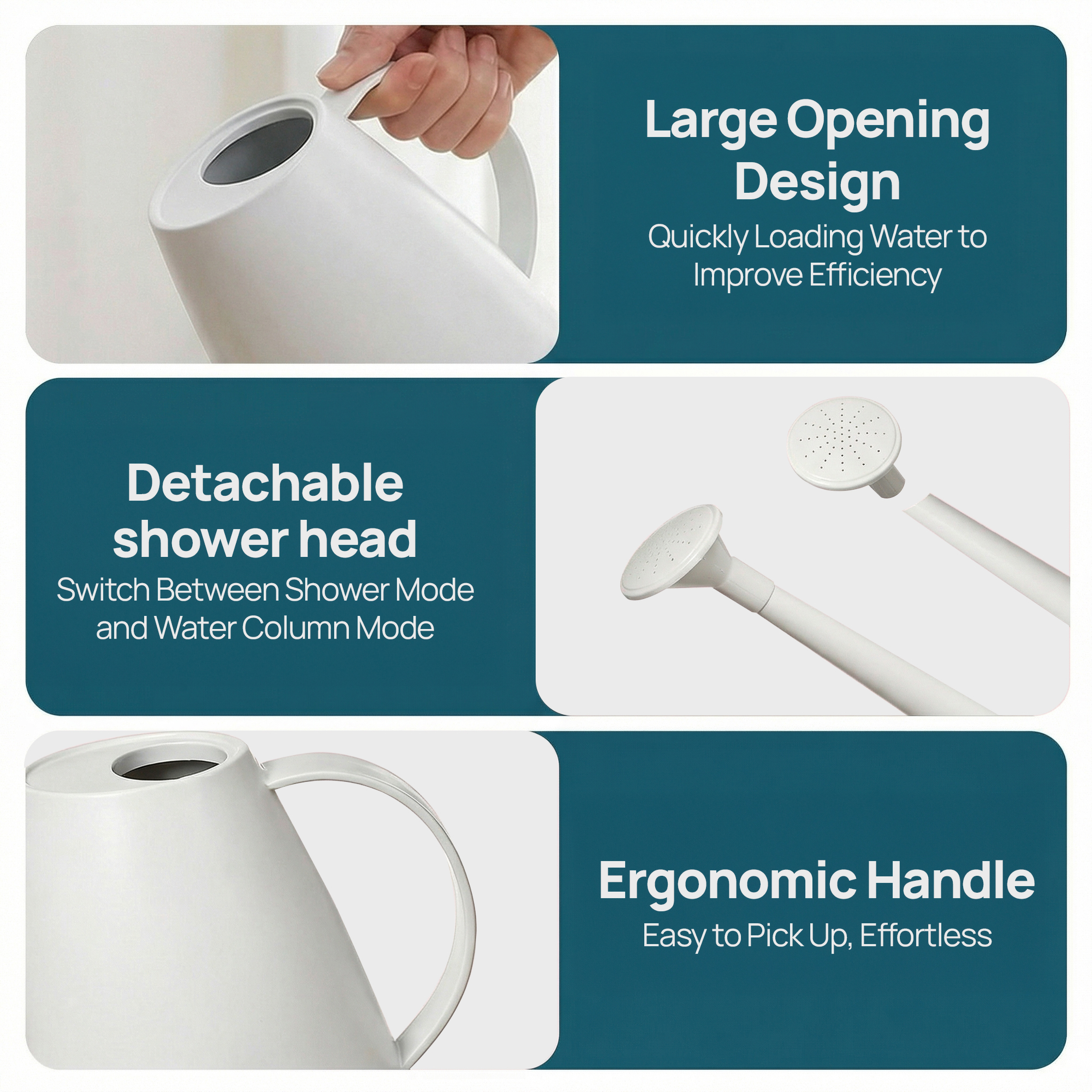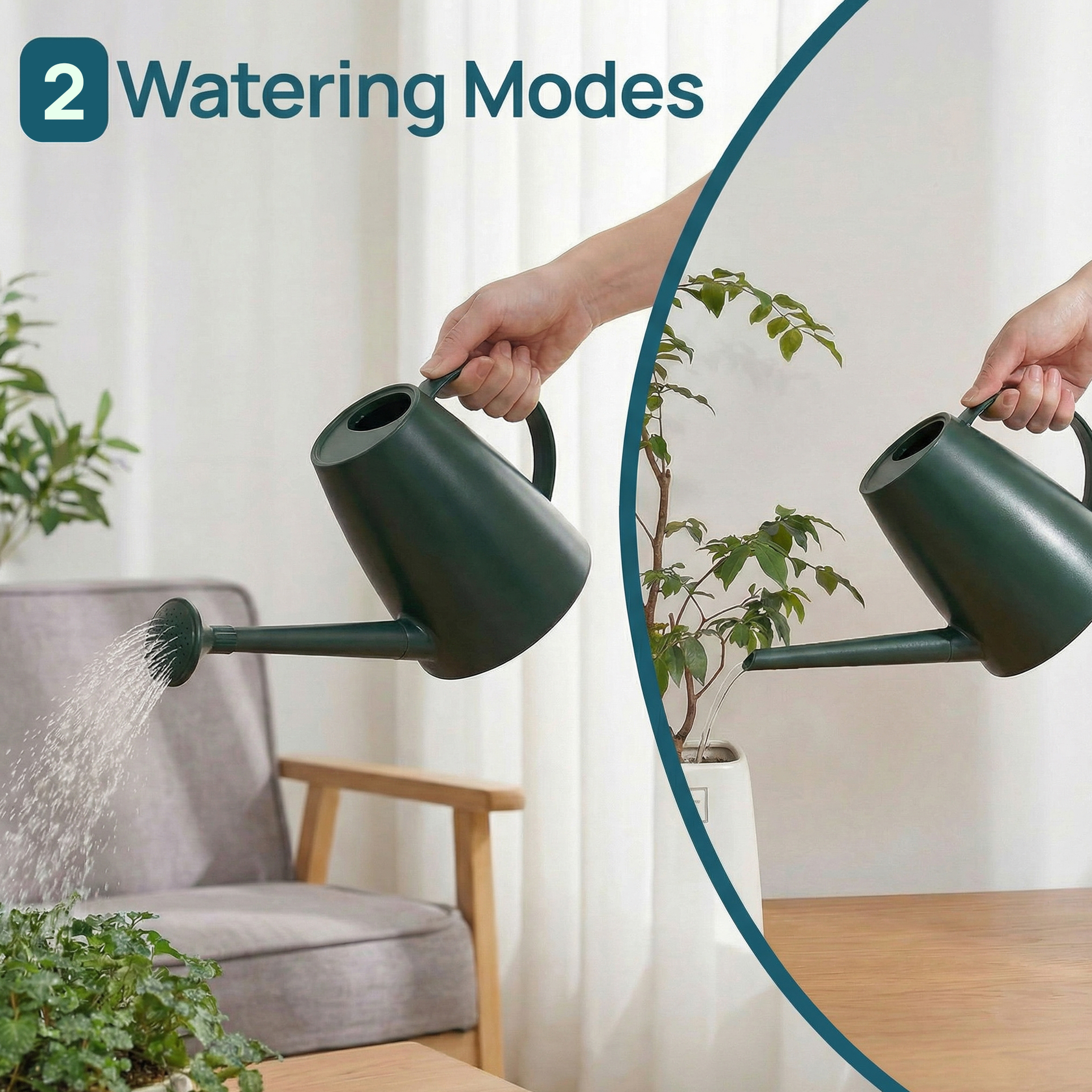 - Detachable Spout and Sprinkler Head for Flexible Watering: The spout and sprinkler head can be attached or removed as needed, making it easy to switch between gentle water dispersion and direct pouring to suit different plant types and watering preferences.