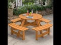 Gather around this comfortable picnic table for family outdoor meals. Solid wood composition offers durable resilience for continual outdoor use. For extra convenience, insert an umbrella in the center hole for sunlight shade and protection. Plus, when it comes to basic outdoor furnishing, this picnic table is what every outdoor area calls for to dine in warm outdoor weathers.
